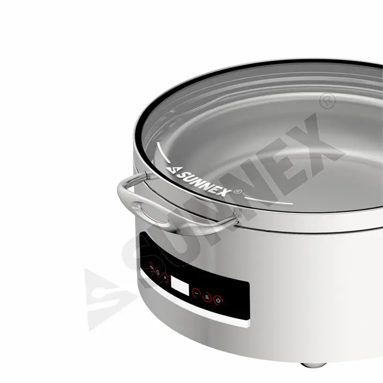 Стенд во комерцијалното угостителство, Sunnexlido Round Electric Chafer мешавини, паметен дизајн и безбедност за да ги редефинира искуствата на вклучена-идеални за хотели, ресторани и настани со голем волумен.