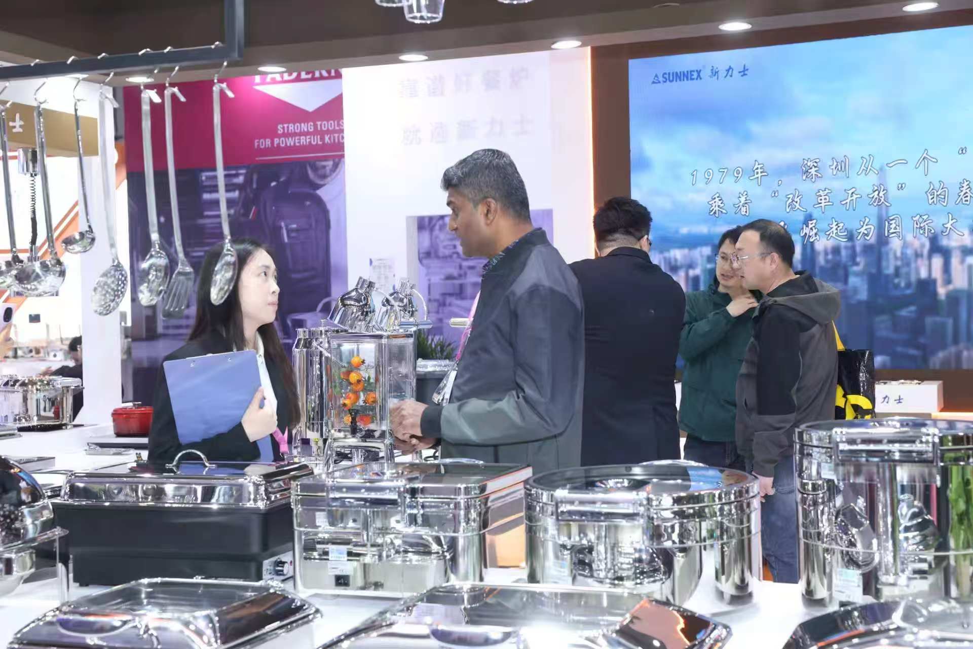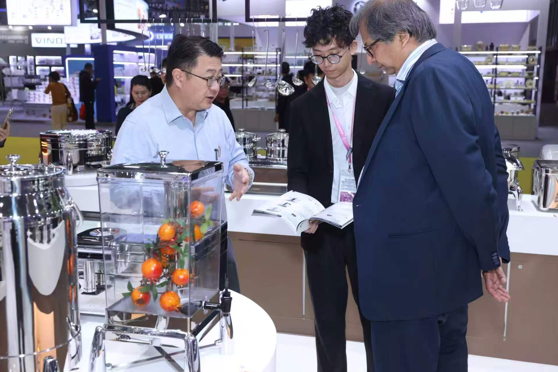 За време на изложбата, брендот се фокусираше на прикажување на бестселери, вклучително и суви јадења без вода, класични тави од нерѓосувачки челик, урни за млеко од серијата Верона, дозери за пијалоци со ледени цевки и други нови производи, задоволување на различни потреби на хотели од висока класа, ланци на угостителски брендови и кантини за персоналот. Нашиот штанд добиваше континуирани посети од професионални купувачи од странство низ Блискиот Исток, Африка, Европа, Америка и Југоисточна Азија. Нашиот професионален тим обезбеди воведување производи еден на еден и поддршка за приспособени решенија за длабински разговори за соработка.